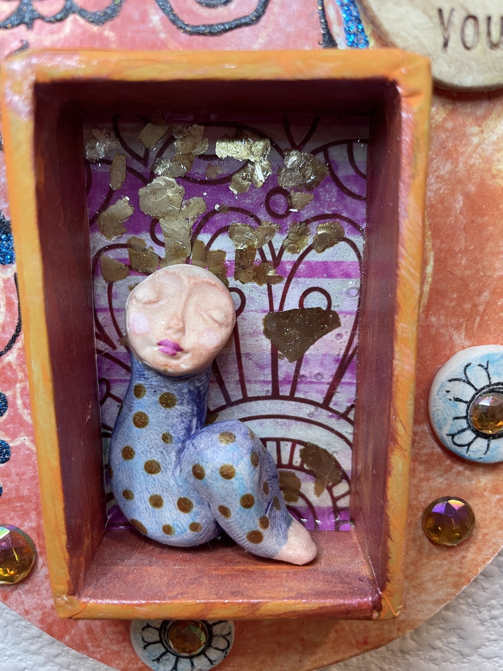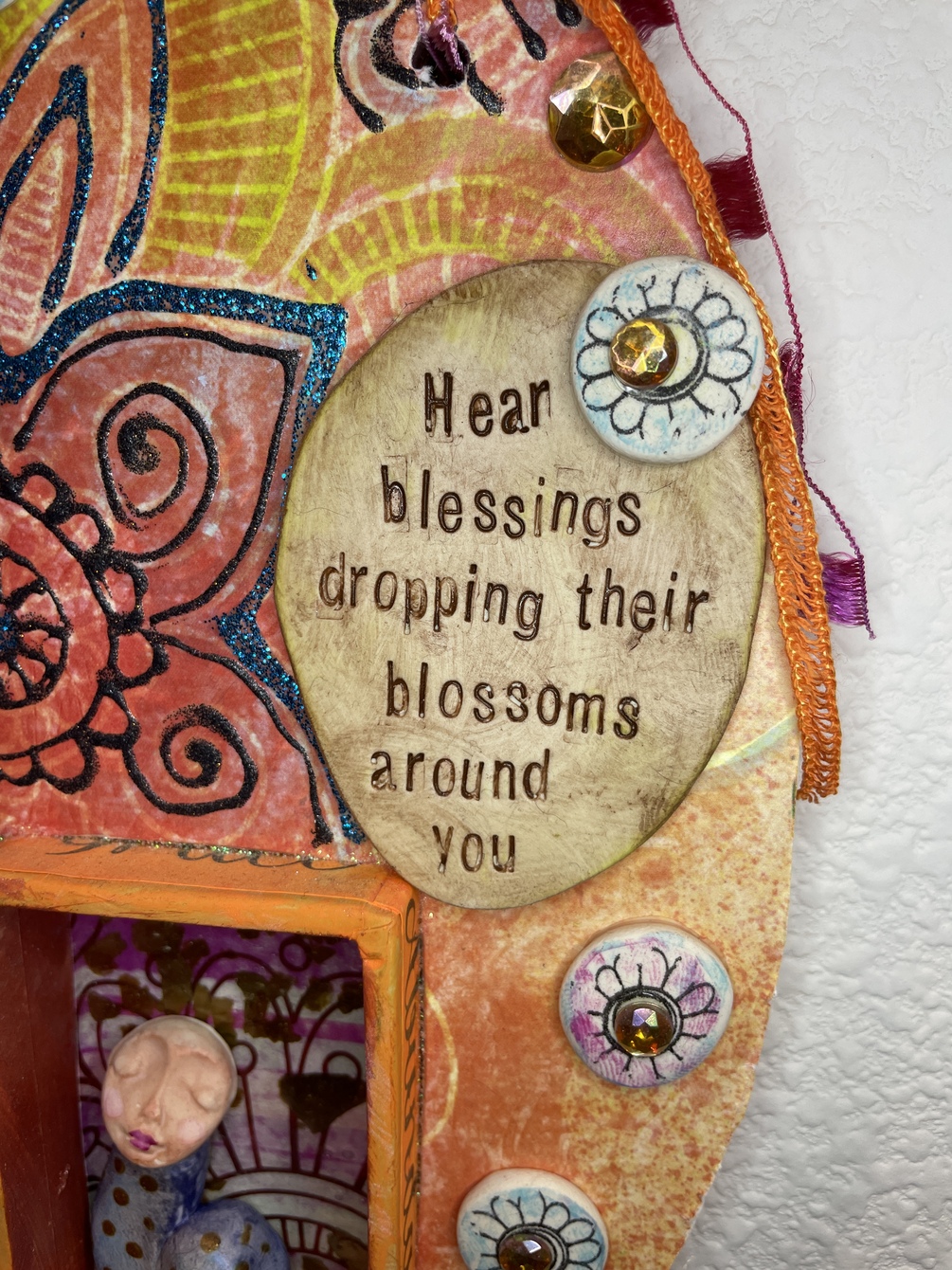 Rumi Blessings Wall Niche with polymer clay, paper mache, stamping and image transfers