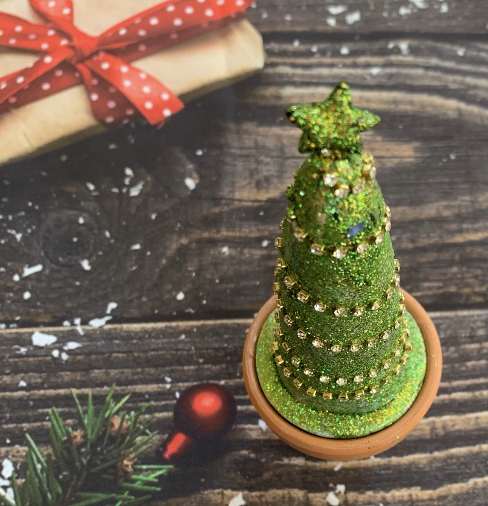 Sparkling Potted Tree Table Decor for the Holidays polymer clay and mixed media project
